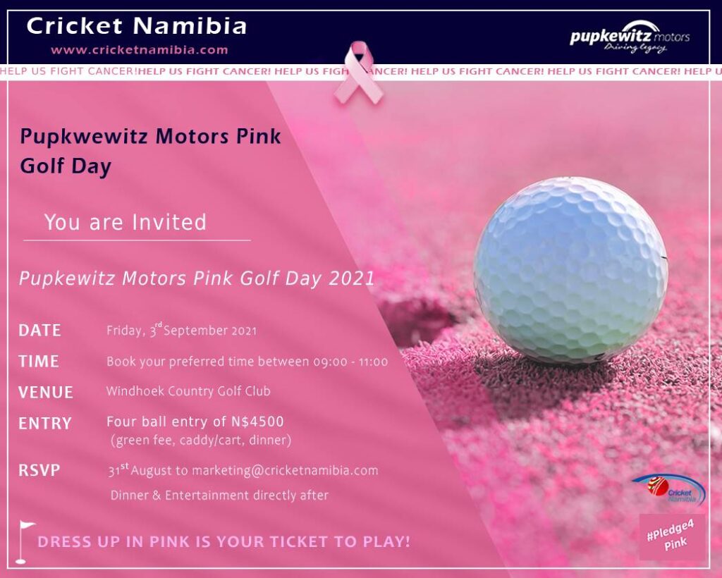 Cricket Namibia has joined forces with Pupkewitz Motors in the #Pledge4Pink Campaign to raise awareness and funds for the cancer community in our country through a golf day. Cricket Namibia invites the public to the first-ever Pupkewitz Motors Pink Golf Day taking place on the 3rd of September 2021 where you can choose your preferred […]