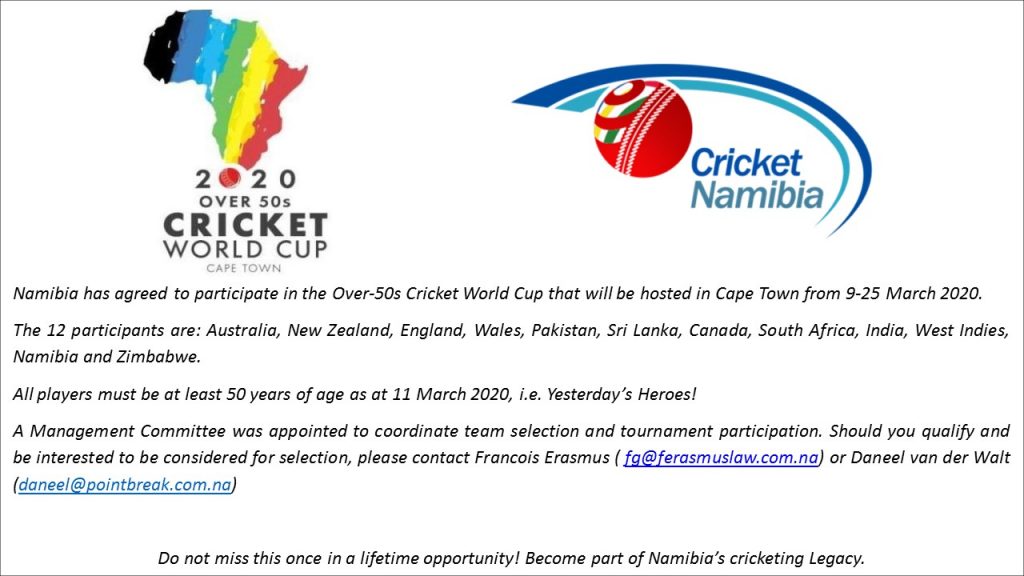 Rub Shoulders with Cricket Legends! Namibia has agreed to participate in the Over-50s Cricket World Cup that will be hosted in Cape Town from 9-25 March 2020. The 12 participants are: Australia, New Zealand, England, Wales, Pakistan, Sri Lanka, Canada, South Africa, India, West Indies, Namibia and Zimbabwe. All players must be at least 50 […]